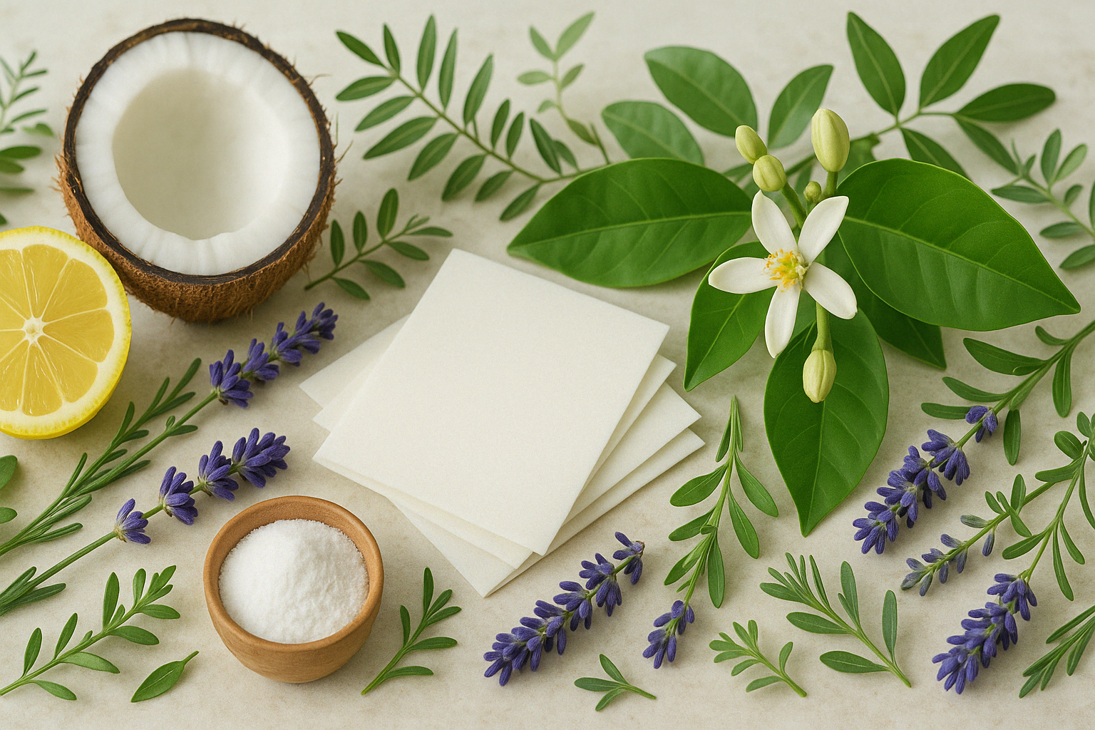 Onze wasstrips zijn gemaakt van natuurlijke, veilige ingrediënten die zacht zijn voor je huid en krachtig tegen vuil. Geen schadelijke chemicaliën, geen microplastics, geen onnodige toevoegingen. Alleen het beste uit de natuur: plantaardige enzymen, biologisch afbreekbare stoffen en huidvriendelijke oliën. Zo draag je met elke wasbeurt bij aan een schonere wereld en een gezonder leven. Eerlijk, duurzaam en doeltreffend, precies zoals het hoort.
